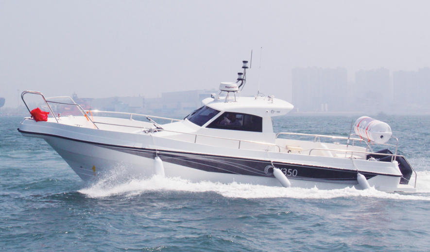 El casco FRP infundido con vacío del 1060, 18% más ligero pero 30% más fuerte que las construcciones tradicionales, cortes a través de ondas de 6 pies a 40 nudos (dos motores Mercury 300hp), mientras que su quilla de verografía y 316 rieles de guardia de 316 grados garantizan la estabilidad en los vientos de la fuerza de BeaUfort 7.